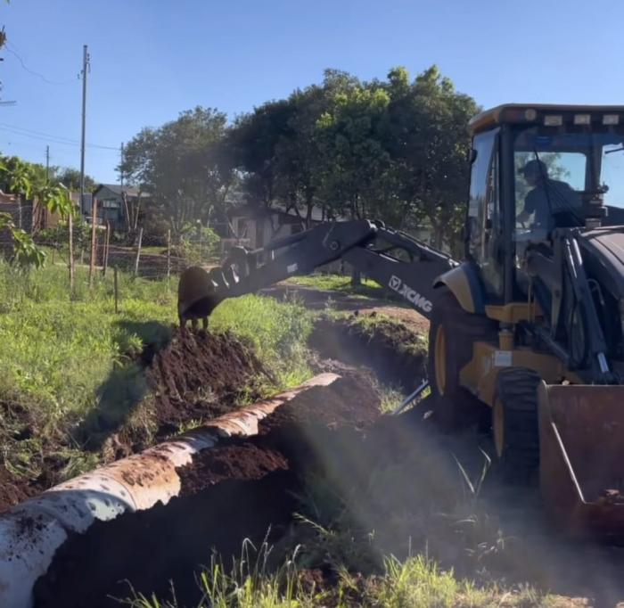 A Secretaria Municipal de Obras e Saneamento de Jóia realizou trabalhos de implantação de tubulação na Rua João Andreatta. A ação tem como objetivo garantir o bom funcionamento da rede de escoamento pluvial e melhorar a infraestrutura urbana, prevenindo problemas de alagamentos e danos no pavimento.